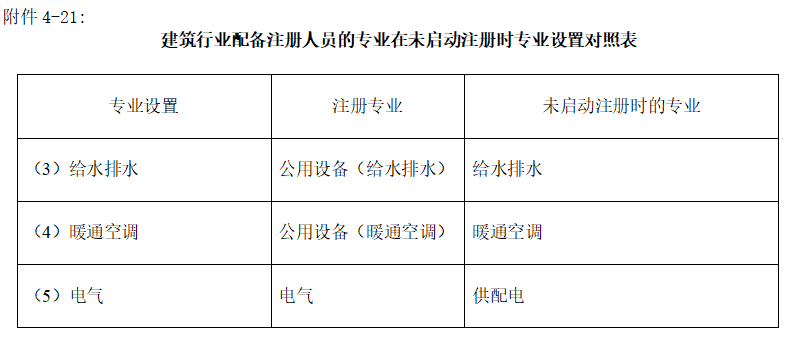 3.建筑工程丙級資質(zhì)的專業(yè)設(shè)置中,(3)給水排水、(4)暖通空調(diào)專業(yè)各配備1名專業(yè)技術(shù)人員,其中1人為注冊人員。